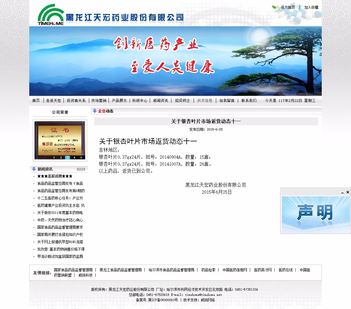 黑龍江天宏藥業(yè)股份有限公司